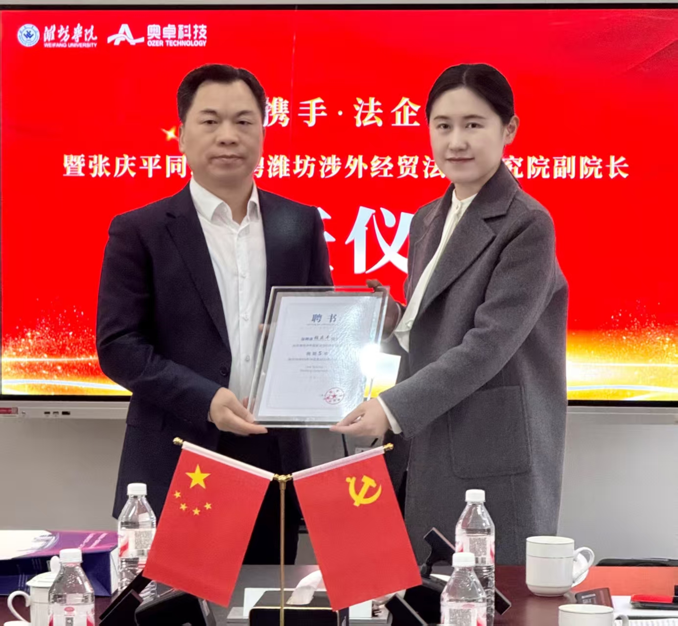 校企携手,法企同行:奥卓科技董事长张庆平受聘为潍坊涉外经贸法治研究院副院长