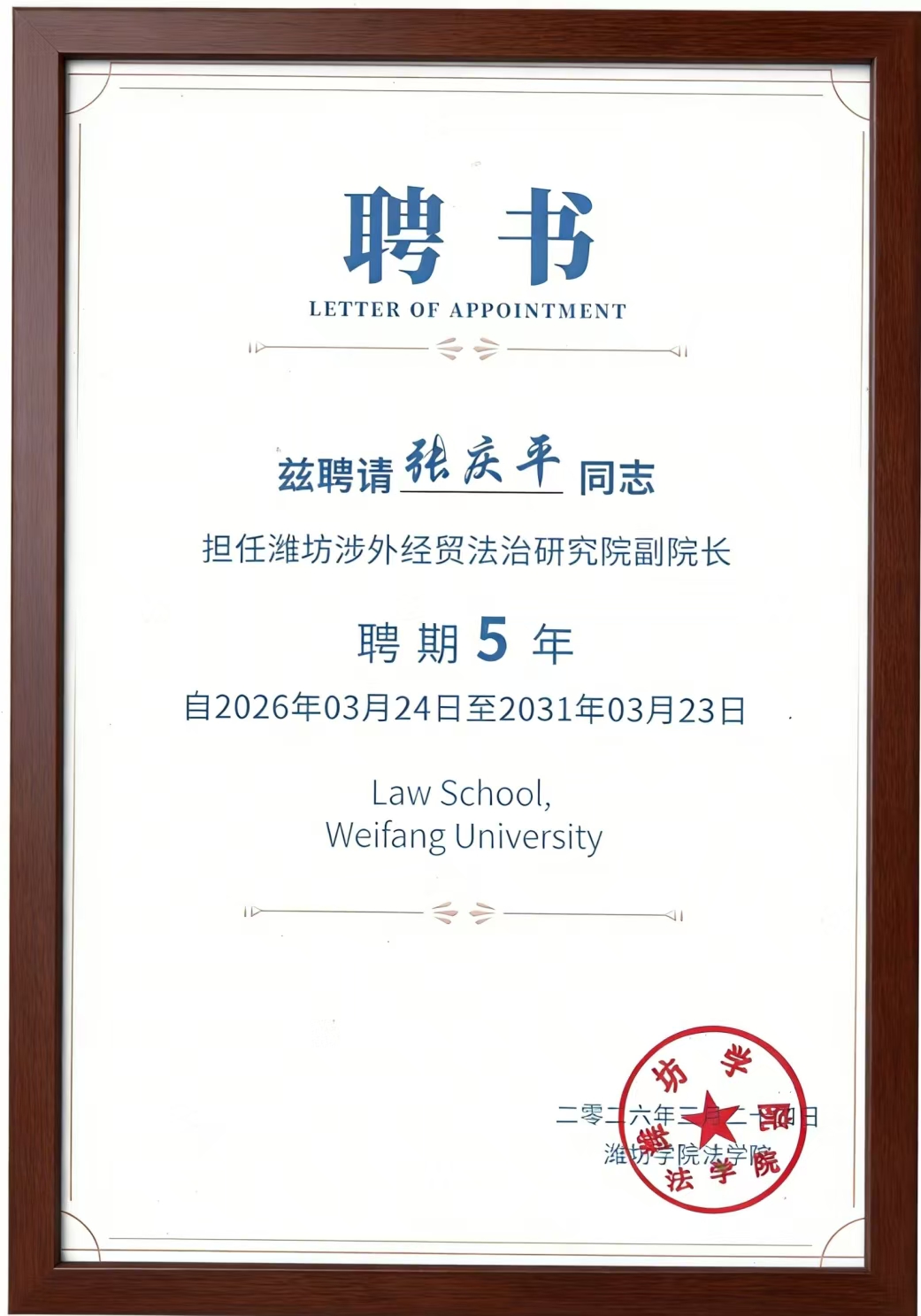 此次受聘研究院副院长,深感荣誉与责任并重。未来张庆平董事长将与研究院同仁携手,聚焦潍坊与中亚经贸合作,探索 “产学研用服” 融合路径,开展中亚国别法治研究、培养涉外法治人才、搭建纠纷解决平台,助力潍坊企业抱团出海、合规出海、共赢出海。以法治护航企业深耕中亚市场,为潍坊企业更好 “走出去” 贡献力量!